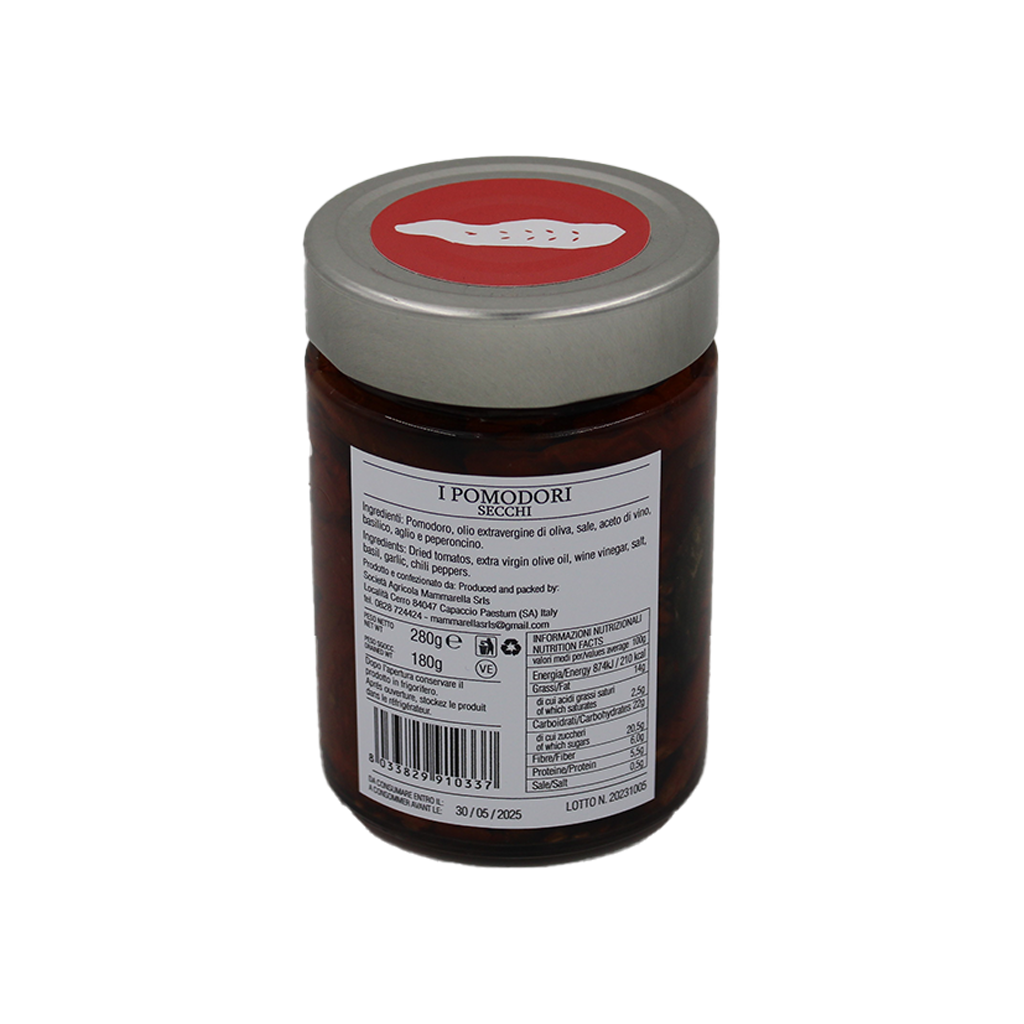 Ingredienti: Pomodoro, olio extravergine di oliva, sale, aceto di vino, basilico, aglio e peperoncino.